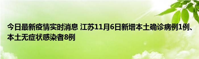 江苏卫健委通报,11月6日0-24时,江苏新增本土确诊病例1例(南京市报告,为集中隔离点发现,在定点医院隔离治疗)新增本土无症状感染者8