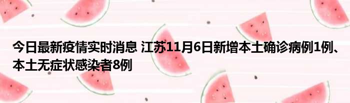 江苏卫健委通报,11月6日0-24时,江苏新增本土确诊病例1例(南京市报告,为集中隔离点发现,在定点医院隔离治疗)新增本土无症状感染者8