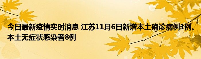 江苏卫健委通报,11月6日0-24时,江苏新增本土确诊病例1例(南京市报告,为集中隔离点发现,在定点医院隔离治疗)新增本土无症状感染者8