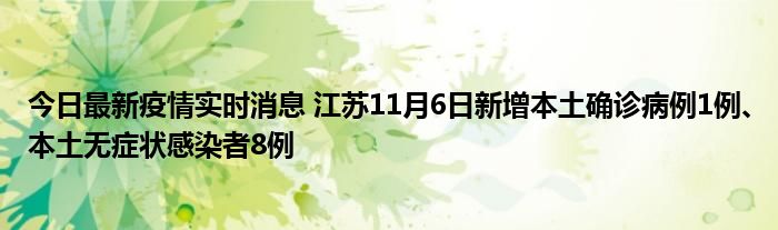 江苏卫健委通报,11月6日0-24时,江苏新增本土确诊病例1例(南京市报告,为集中隔离点发现,在定点医院隔离治疗)新增本土无症状感染者8