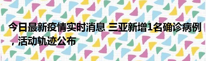 今日最新疫情实时消息 三亚新增1名确诊病例,活动轨迹公布
