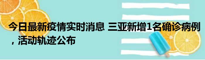 今日最新疫情实时消息 三亚新增1名确诊病例,活动轨迹公布