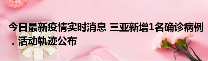 今日最新疫情实时消息 三亚新增1名确诊病例,活动轨迹公布