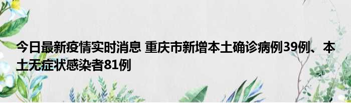 今日最新疫情实时消息 重庆市新增本土确诊病例39例、本土无症状感染者81例