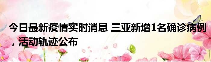 今日最新疫情实时消息 三亚新增1名确诊病例,活动轨迹公布