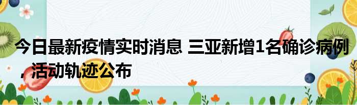 今日最新疫情实时消息 三亚新增1名确诊病例,活动轨迹公布