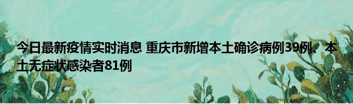 今日最新疫情实时消息 重庆市新增本土确诊病例39例、本土无症状感染者81例