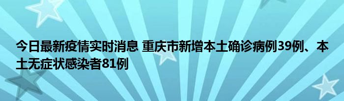 今日最新疫情实时消息 重庆市新增本土确诊病例39例、本土无症状感染者81例