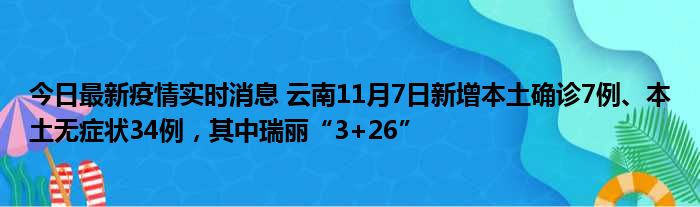 今日最新疫情实时消息 云南11月7日新增本土确诊7例、本土无症状34例,其中瑞丽“3+26”
