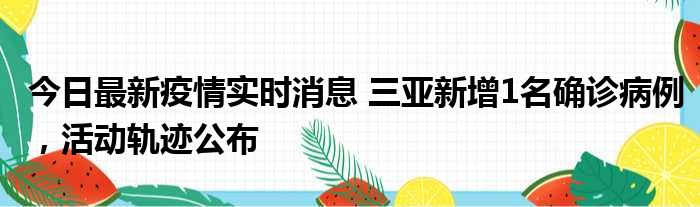 今日最新疫情实时消息 三亚新增1名确诊病例,活动轨迹公布