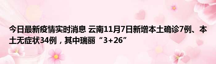 今日最新疫情实时消息 云南11月7日新增本土确诊7例、本土无症状34例,其中瑞丽“3+26”