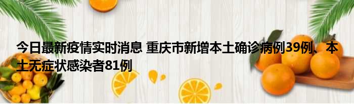 今日最新疫情实时消息 重庆市新增本土确诊病例39例、本土无症状感染者81例