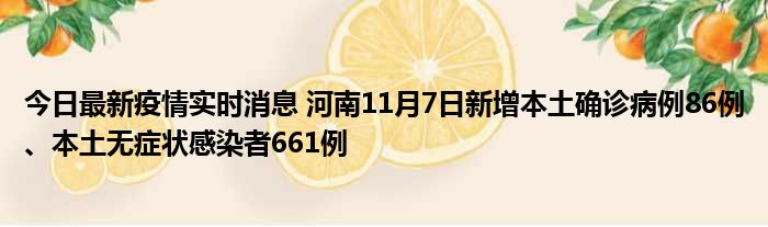 今日最新疫情实时消息 河南11月7日新增本土确诊病例86例、本土无症状感染者661例
