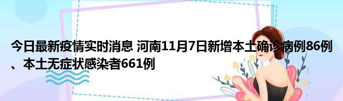 今日最新疫情实时消息 河南11月7日新增本土确诊病例86例、本土无症状感染者661例