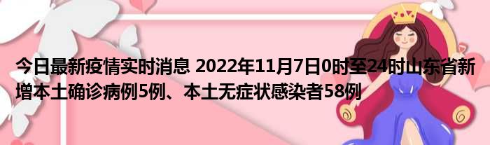 您的位置:首页 >动态频道 > 聚焦疫情 > 今日最新疫情实时消息 2022年11月7日0时至24时山东省新增本土确诊病例5例、本土无症状感染者58例 2022-11-15 20:58:32 • 来源: 导读 免责声明:本文由用户上传,如有侵权请联系删除! 上一篇:今日最新疫情实时消息 河南11月7日新增本土确诊病例86例、本土无症状感染者661例 下一篇:今日最新疫情实时消息 海南11月7日新增本土确诊病例2例