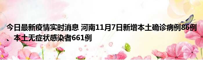 今日最新疫情实时消息 河南11月7日新增本土确诊病例86例、本土无症状感染者661例
