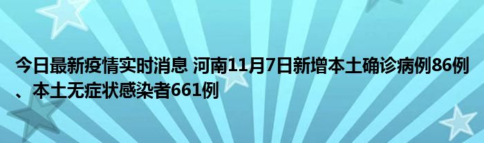 今日最新疫情实时消息 河南11月7日新增本土确诊病例86例、本土无症状感染者661例