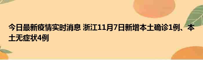 今日最新疫情实时消息 浙江11月7日新增本土确诊1例、本土无症状4例