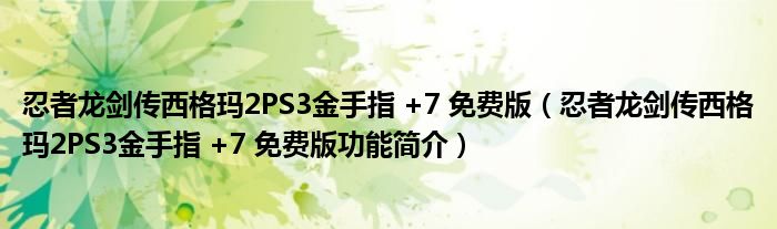 忍者龙剑传西格玛2PS3金手指 +7 免费版(忍者龙剑传西格玛2PS3金手指 +7 免费版功能简介)