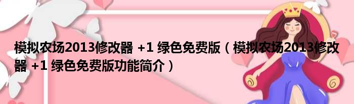 模拟农场2013修改器 +1 绿色免费版(模拟农场2013修改器 +1 绿色免费版功能简介)