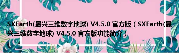 SXEarth(晟兴三维数字地球) V4.5.0 官方版(SXEarth(晟兴三维数字地球) V4.5.0 官方版功能简介)