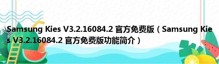 导读 大家好,关于Samsung Kies V3 2 16084 2 官方免费版,Samsung Kies V3 2 16084 2 官方免费版功能简介这个很多人还不知道,小勒来为大家