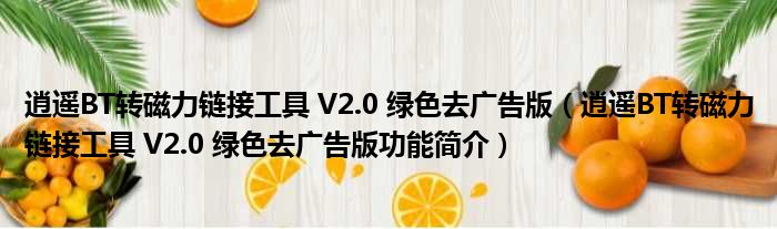 逍遥BT转磁力链接工具 V2.0 绿色去广告版(逍遥BT转磁力链接工具 V2.0 绿色去广告版功能简介)