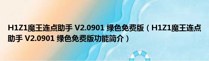 导读 大家好,关于H1Z1魔王连点助手 V2 0901 绿色免费版,H1Z1魔王连点助手 V2 0901 绿色免费版功能简介这个很多人还不知道,小勒来为大家解答