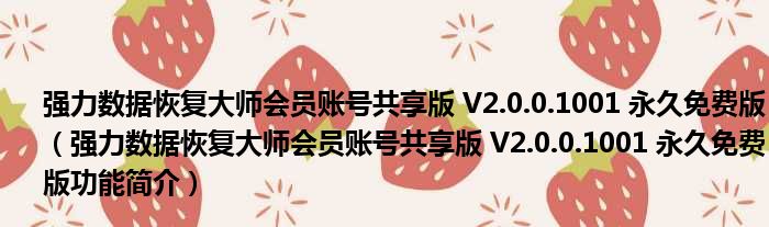 强力数据恢复大师会员账号共享版 V2.0.0.1001 永久免费版(强力数据恢复大师会员账号共享版 V2.0.0.1001 永久免费版功能简介)