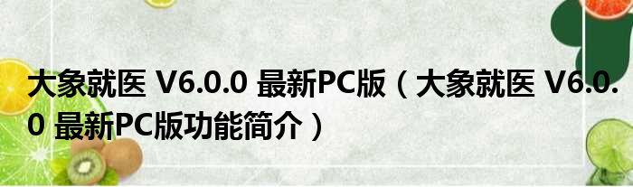 大象就医 V6.0.0 最新PC版(大象就医 V6.0.0 最新PC版功能简介)