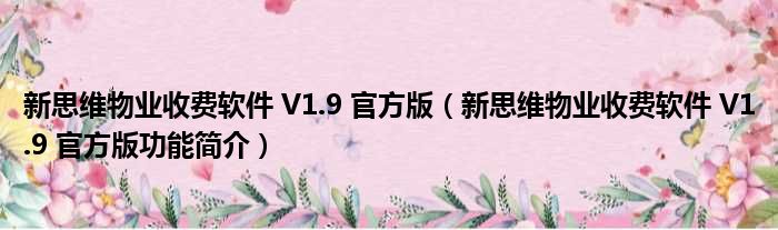 新思维物业收费软件 V1.9 官方版(新思维物业收费软件 V1.9 官方版功能简介)