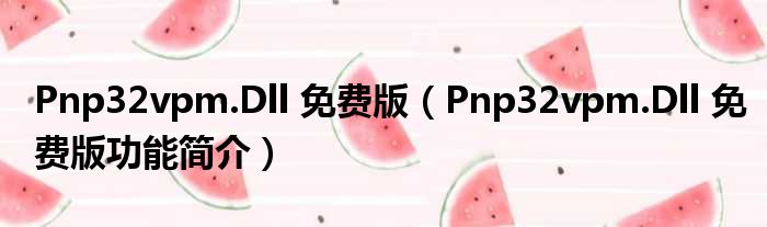 Pnp32vpm.Dll 免费版(Pnp32vpm.Dll 免费版功能简介)