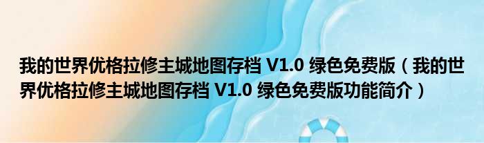 我的世界优格拉修主城地图存档 V1.0 绿色免费版(我的世界优格拉修主城地图存档 V1.0 绿色免费版功能简介)