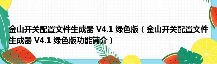 金山开关配置文件生成器 V4.1 绿色版(金山开关配置文件生成器 V4.1 绿色版功能简介)