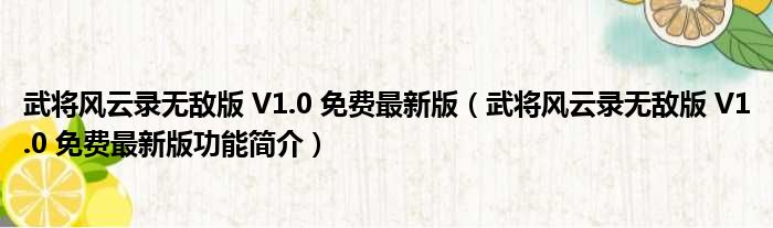 武将风云录无敌版 V1.0 免费最新版(武将风云录无敌版 V1.0 免费最新版功能简介)
