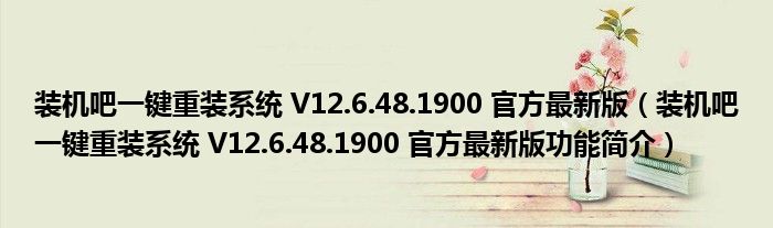 装机吧一键重装系统 V12.6.48.1900 官方最新版(装机吧一键重装系统 V12.6.48.1900 官方最新版功能简介)