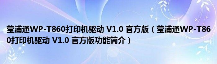 莹浦通WP-T860打印机驱动 V1.0 官方版(莹浦通WP-T860打印机驱动 V1.0 官方版功能简介)