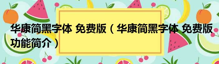 华康简黑字体 免费版(华康简黑字体 免费版功能简介)