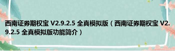 西南证券期权宝 V2.9.2.5 全真模拟版(西南证券期权宝 V2.9.2.5 全真模拟版功能简介)