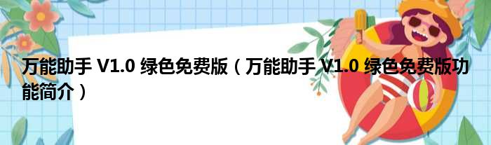 万能助手 V1.0 绿色免费版(万能助手 V1.0 绿色免费版功能简介)