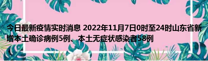 您的位置:首页 >动态频道 > 聚焦疫情 > 今日最新疫情实时消息 2022年11月7日0时至24时山东省新增本土确诊病例5例、本土无症状感染者58例 2022-11-16 09:22:13 • 来源: 导读 免责声明:本文由用户上传,如有侵权请联系删除! 上一篇:今日最新疫情实时消息 北京通州新增1例确诊和4例无症状感染者,主要风险点位公布 下一篇:今日最新疫情实时消息 北京昌平新增4名确诊病例和4名无症状感染者,风险点位公布