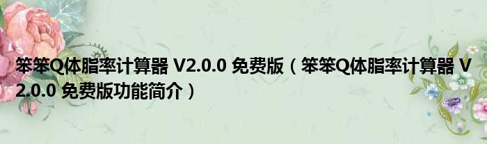导读 大家好,关于笨笨Q体脂率计算器 V2 0 0 免费版,笨笨Q体脂率计算器 V2 0 0 免费版功能简介这个很多人还不知道,小勒来为大家解答以上的问