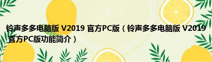 铃声多多电脑版 V2019 官方PC版(铃声多多电脑版 V2019 官方PC版功能简介)