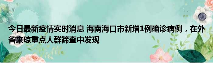 今日最新疫情实时消息 海南海口市新增1例确诊病例,在外省来琼重点人群筛查中发现