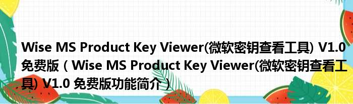 Wise MS Product Key Viewer(微软密钥查看工具) V1.0 免费版(Wise MS Product Key Viewer(微软密钥查看工具) V1.0 免费版功能简介)