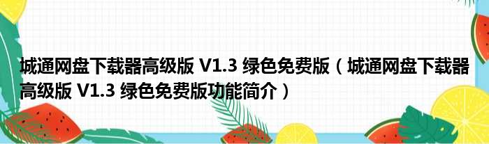 导读 大家好,关于城通网盘下载器高级版 V1 3 绿色免费版,城通网盘下载器高级版 V1 3 绿色免费版功能简介这个很多人还不知道,小勒来为大家解