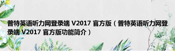 普特英语听力网登录端 V2017 官方版(普特英语听力网登录端 V2017 官方版功能简介)