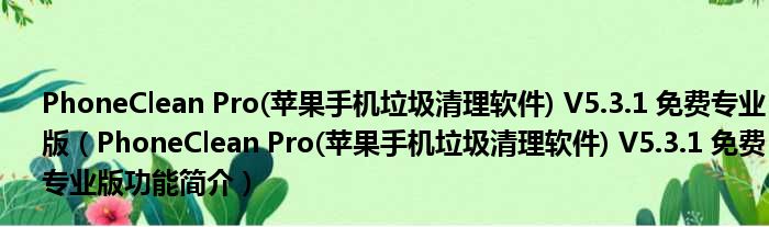 PhoneClean Pro(苹果手机垃圾清理软件) V5.3.1 免费专业版(PhoneClean Pro(苹果手机垃圾清理软件) V5.3.1 免费专业版功能简介)