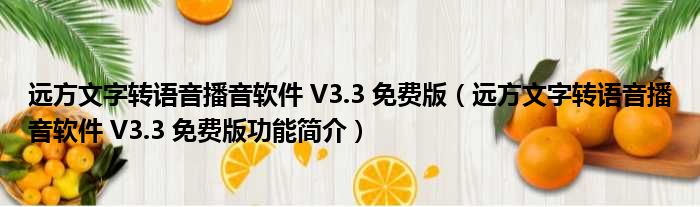 导读 大家好,关于远方文字转语音播音软件 V3 3 免费版,远方文字转语音播音软件 V3 3 免费版功能简介这个很多人还不知道,小勒来为大家解答以