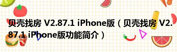 贝壳找房 V2.87.1 iPhone版(贝壳找房 V2.87.1 iPhone版功能简介)